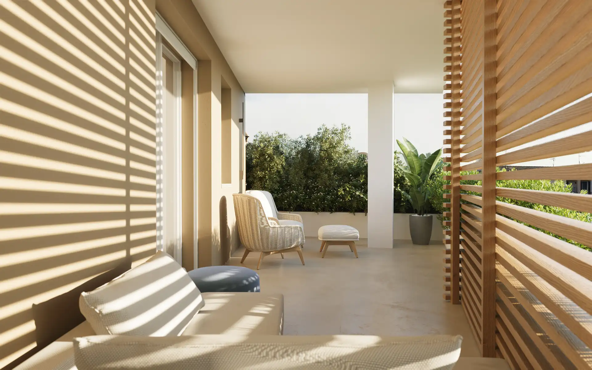 Ogni villa ha un giardino privato fino a 167 mq e terrazze che sono veri salotti all'aperto.